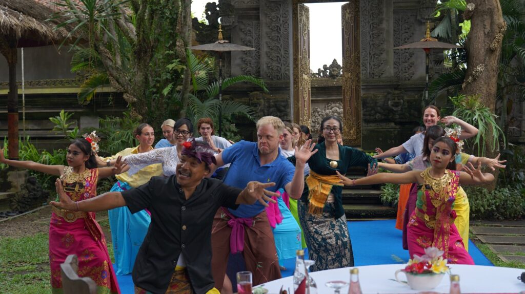 During the industrial visit to the Kutus-Kutus Sanga-Sanga Herbal Factory, the delegates received an in-depth presentation regarding the company profile and the business ecosystem of traditional medicine, which has now penetrated the global market. Students were invited to directly observe production processes that integrate modern techniques with ancestral heritage recipes. This session provided a new perspective for international students on how local commodities can be managed through professional management to possess high economic value without abandoning the roots of local health traditions. The cultural exploration continued at Puri Ageng Blahbatuh, where the group was welcomed with rich historical narratives regarding the palace’s existence and the cultural dynamics of the Blahbatuh community. At this cultural center, students were not merely observers but participated actively in Balinese dance practice. This session aimed to directly introduce the philosophy of movement, discipline, and the aesthetics of Balinese performing arts, facilitating a dynamic and participatory cultural exchange between students of both nations.